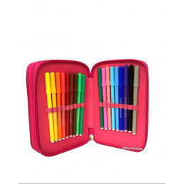 Përmbajtja: Kuletë me 3 ndarje dhe 3 zinxhirë dhe përmban 18 Pastele me llak Giotto 18 Shënues me ngjyra Giotto Turbo 1 Gome 1 mprehëse lapsash 1 Ngjitës 1 Stilolaps gomë blu 1 stilolaps me 6 ngjyra 1 Mini theksues 1 Vizore prej 15 cm 1 Laps 1 palë gërshërë